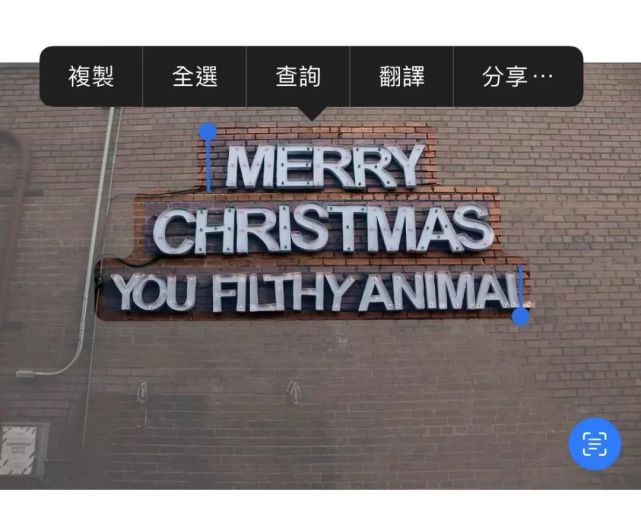 如果相册里面的照片有文字的时候,现在iOS会通过深度学习识别到图片上面的文字内容,并且可以直接选中复制或者翻译。