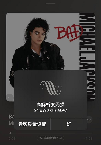就是Apple Music现在已经可以听无损音质的歌曲。