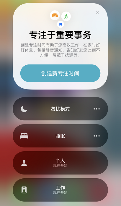 并且在专注模式下,系统可以把在专注模式下收到的通知分成单独一组静音,防止打扰用户。