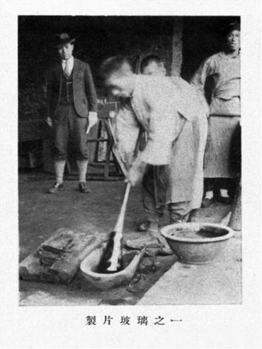 玻璃公司是用煤气发生炉产生煤气作为燃料的,且“有发动机以给动力”,熔料炉是用池炉,技术在当时较为先进。其操作工艺主要是:将铁吹筒探人池炉内,蘸取少量玻璃液,取出后一边拈转,一边通过吹筒吹气,使玻璃液慢慢膨胀成球形,然后放置到半球形铁槽内继续转动,使球形圆正。铁槽内有少许冷水,起降温作用。同时,用水冷却吹筒的另一端,以便于把持。等玻璃稍微冷却后,再将吹筒探入池炉,二次蘸取,这样重复多次,直至玻璃液成为直径达二十公分左右的球时,将其放到一个瓢形铁槽内,一边继续用水冷却吹筒的下端,一边从上端吹气,使球形逐渐涨大,成为空泡。吹制过程中,要时时转动吹筒,使球形空泡薄厚均匀。如果玻璃温度降低,则再将吹筒深入烘炉加热,使玻璃泡变软。此时,将吹筒悬空垂立于深地槽中,从上端吹气,玻璃泡受重力影响慢慢坠入地槽,形成筒状。