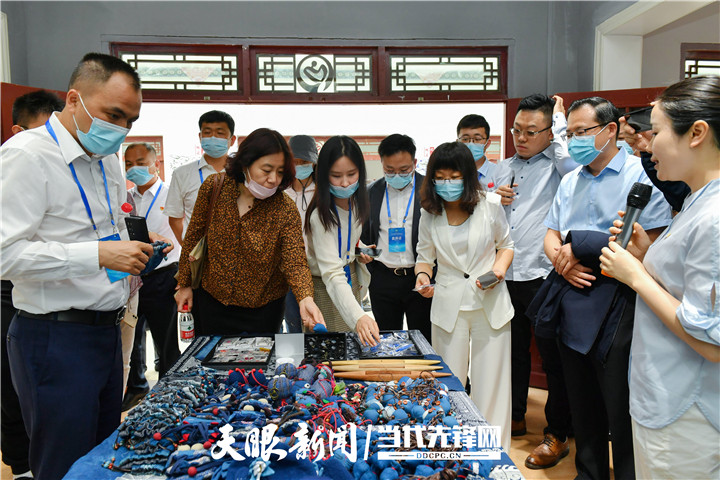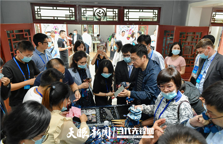 “主播”对着镜头侃侃而谈,引来参会嘉宾纷纷驻足观看。据新仁乡副乡长许蕾介绍。化屋村在传承民族技艺的同时,由村党支部领办的合作社引进村内能人,共同创办的刺绣蜡染车间。目前,共吸纳了19名苗族妇女稳定就业,还有50余名绣娘在家制作后以计件方式获取报酬。