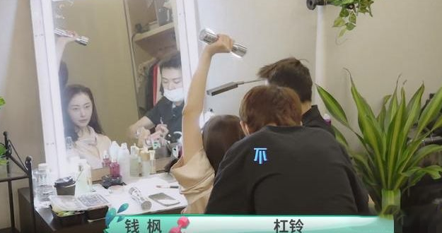 她真的是无时不刻都在创造条件做运动,化妆师给她化妆的时候也在举哑铃练手臂。