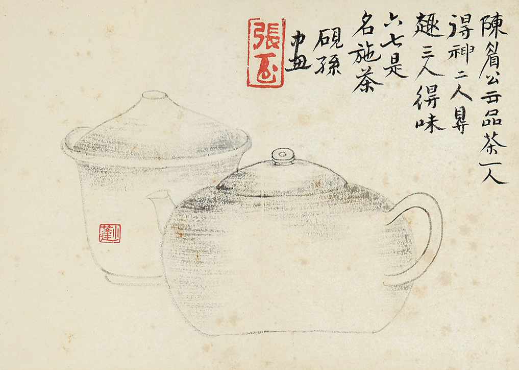 陈眉公云:品茶一人得神,二人得趣,三人得味,六七是名。施茶砚孙画。