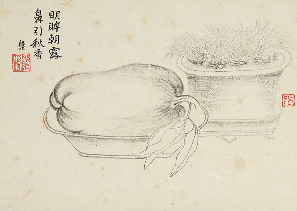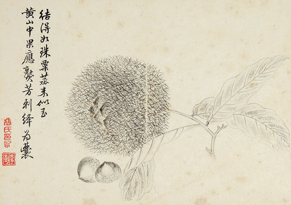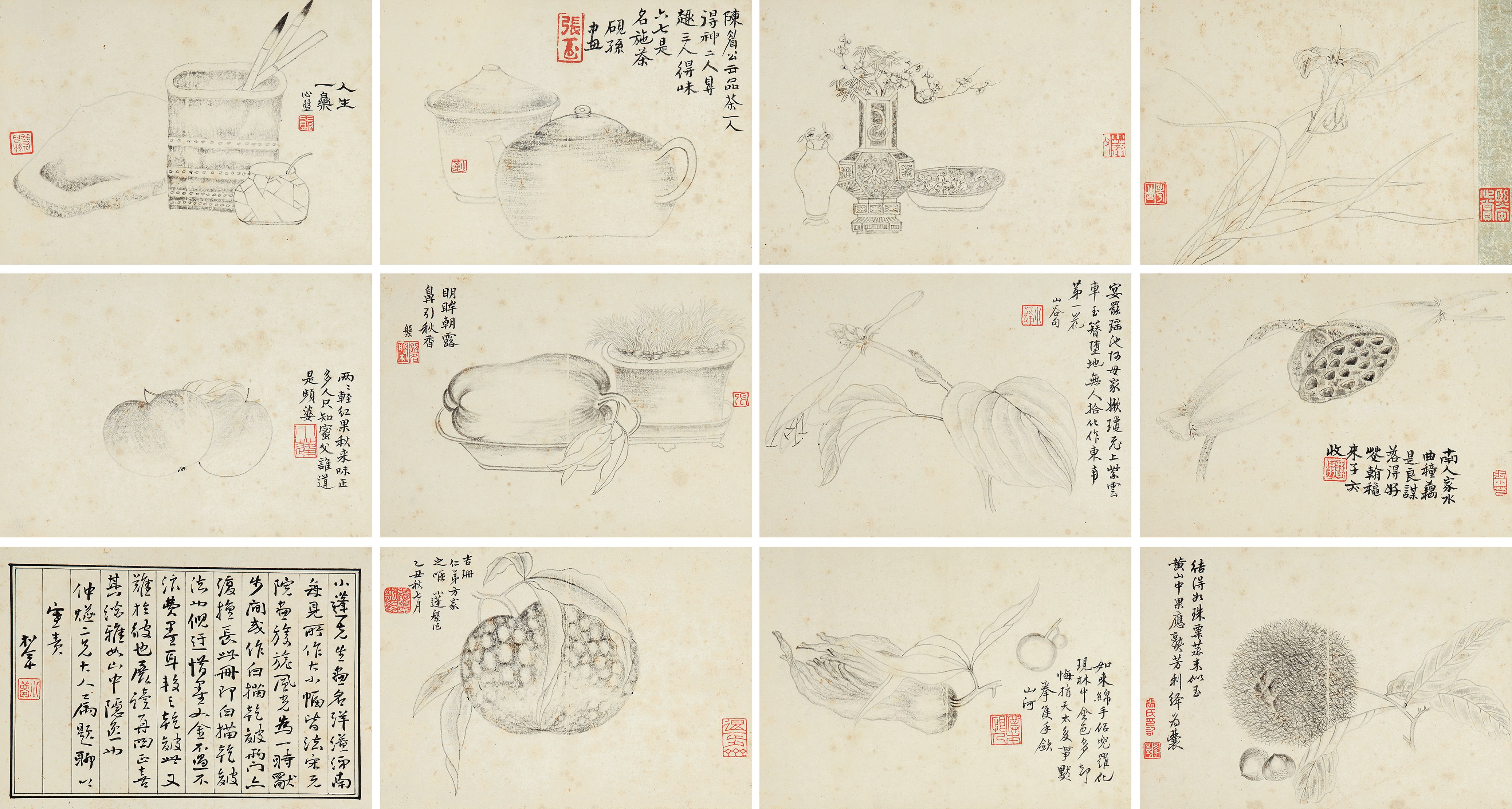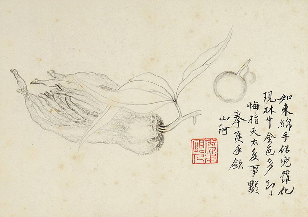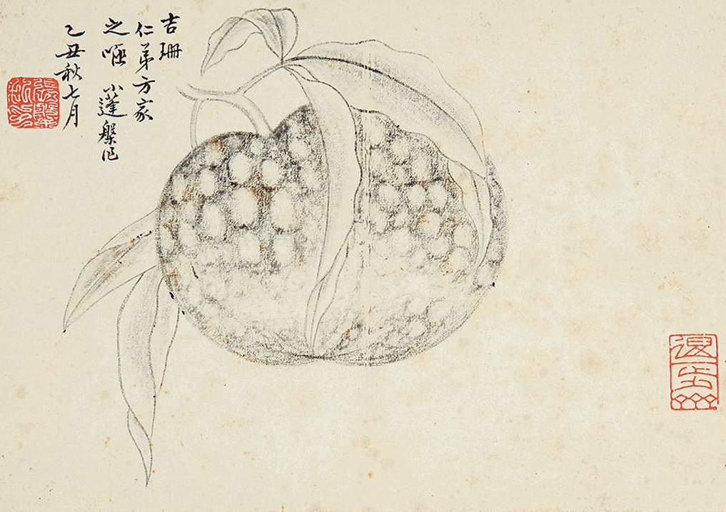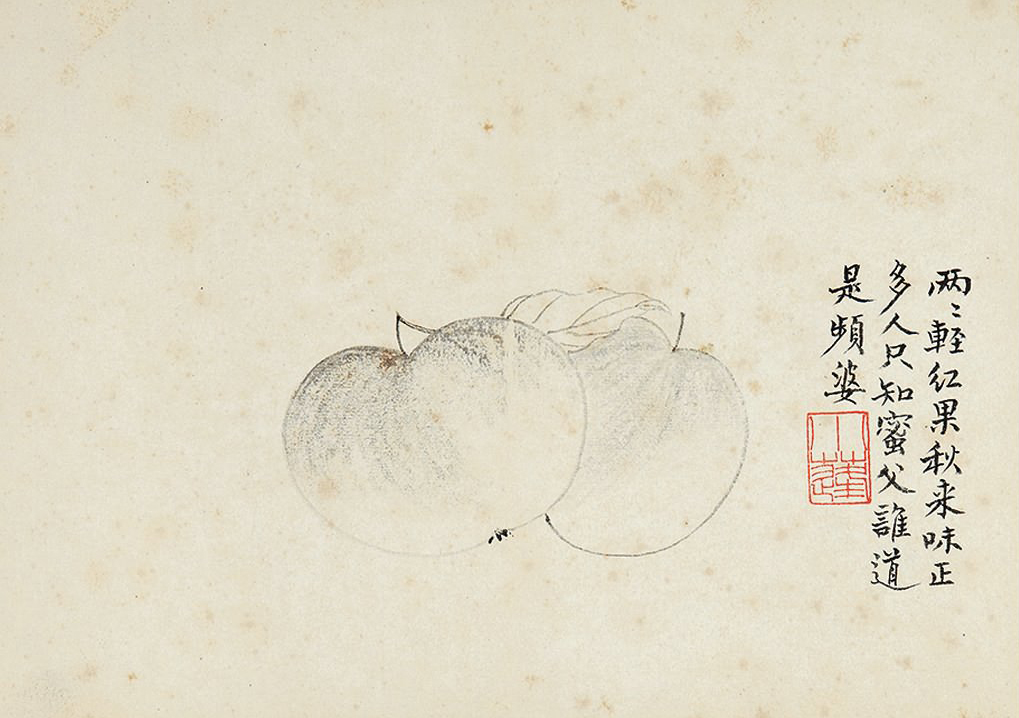 《写生佳果册》由清代画家张槃1865年作,纸本水墨,此画册共计十一幅作品,每幅作品纵16.5厘米,横23厘米,约0.3平尺。