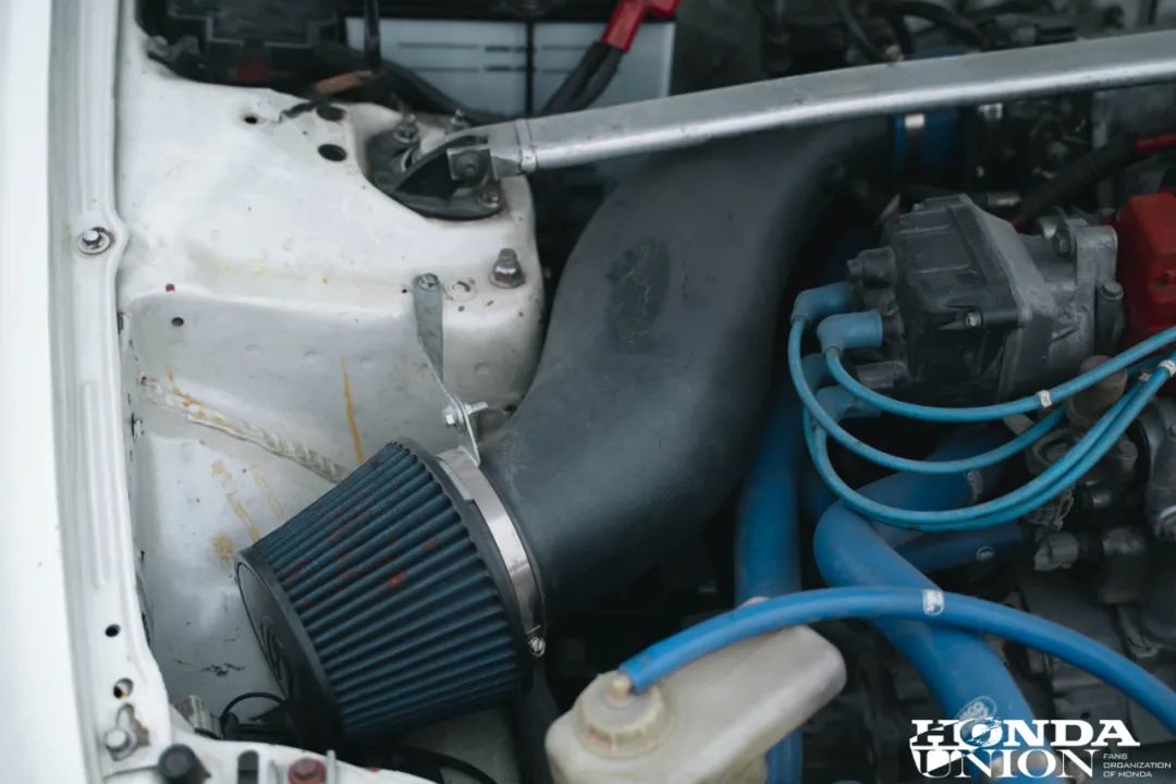 机器没有选择用SiR上面的黑顶16A,而是选择了后辈EK9身上的16B。经过优化的进气肥肠,包上隔热布的排气芭蕉,还有强化过的冷却系统,进一步的压榨这台红顶名机的马力。