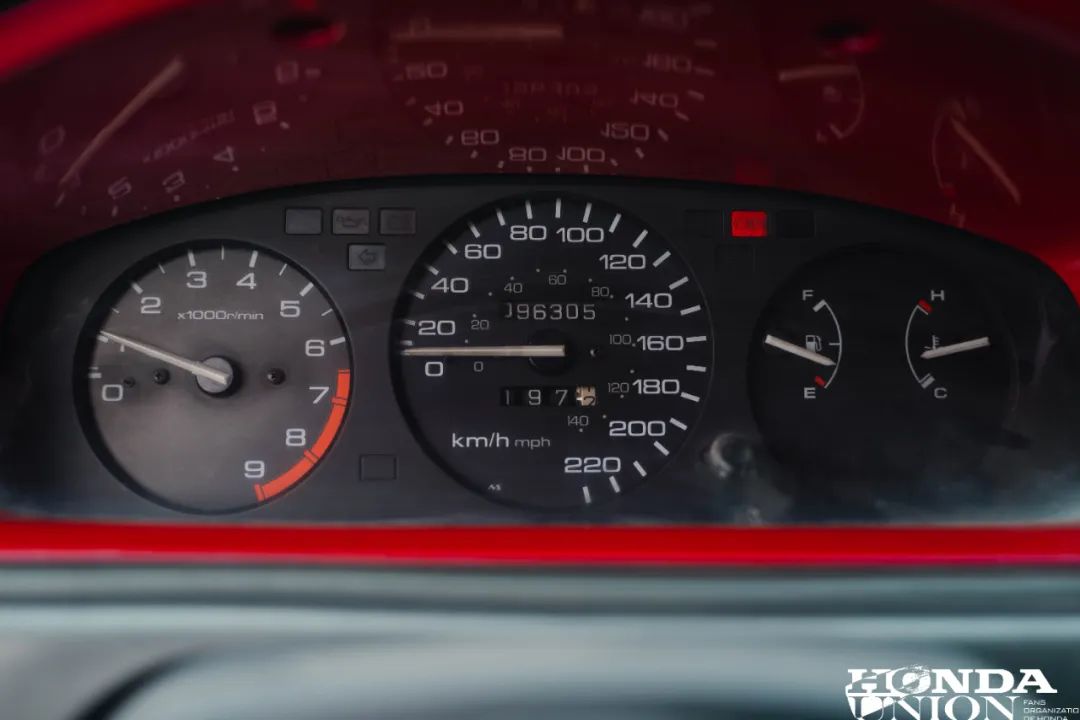内饰整体保新程度还是相当不错的,而且改装的方向盘也非常符合这台车的气质,不过喷红的仪表板就显得有点骚气了!哈哈~