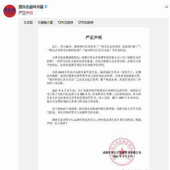 6月9日, @贤合庄卤味火锅 发布声明:某抖音号为博取眼球发布贤合庄总部关停等不实信息已向贤合庄品牌正式道歉!我们必将继续保持初心,不负厚爱!