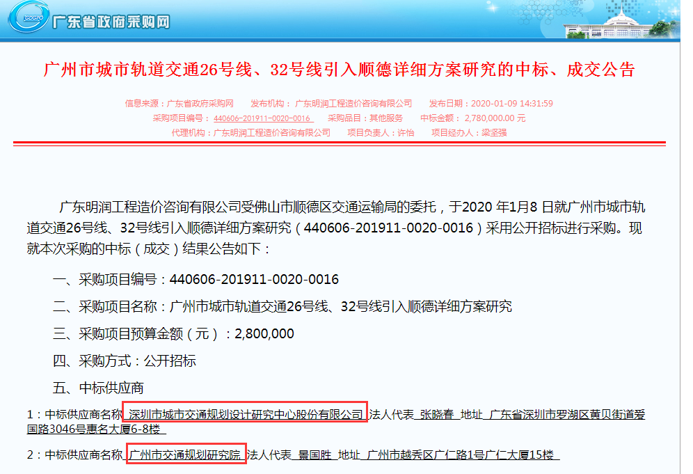 乐居翻阅资料获悉,广州市地铁26号线、32号线引入顺德详细方案早于2020年1月启动研究,当时招标公告显示,将对两条线路进入顺德前的站点至顺德境内全线进行研究,合计长度初步估算约38公里,规划期限为2035年。