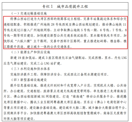 根据南海十四五规划透露,将积极推进广州地铁28号线西延至佛山西站规划建设,推动佛山地铁11号线北延过江接入广州地铁网络,主动争取佛山地铁5号线一期、6号线、7号线、8号线一期等项目建设。