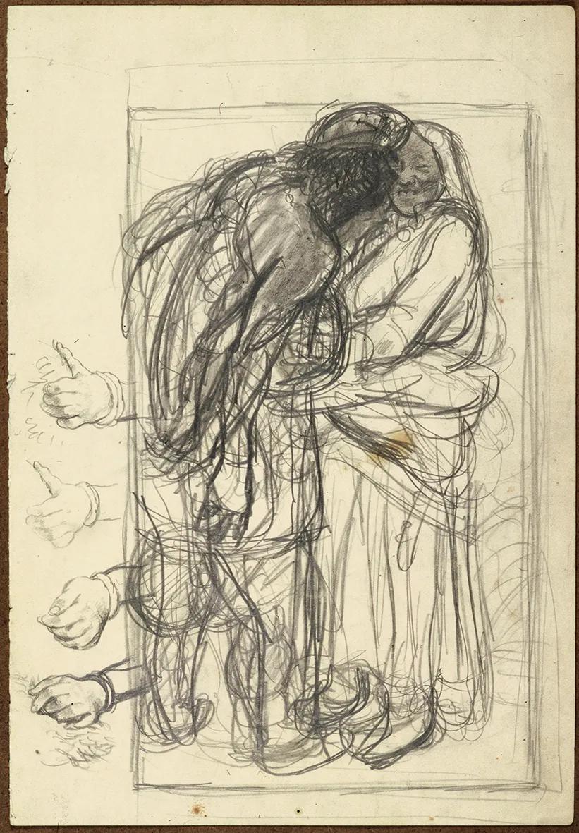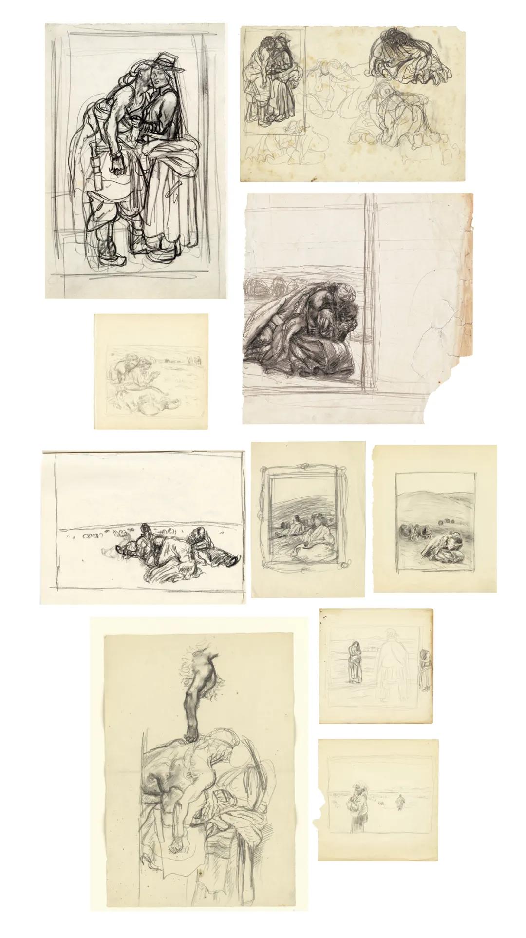 “三个谈话的女人”素描草图。