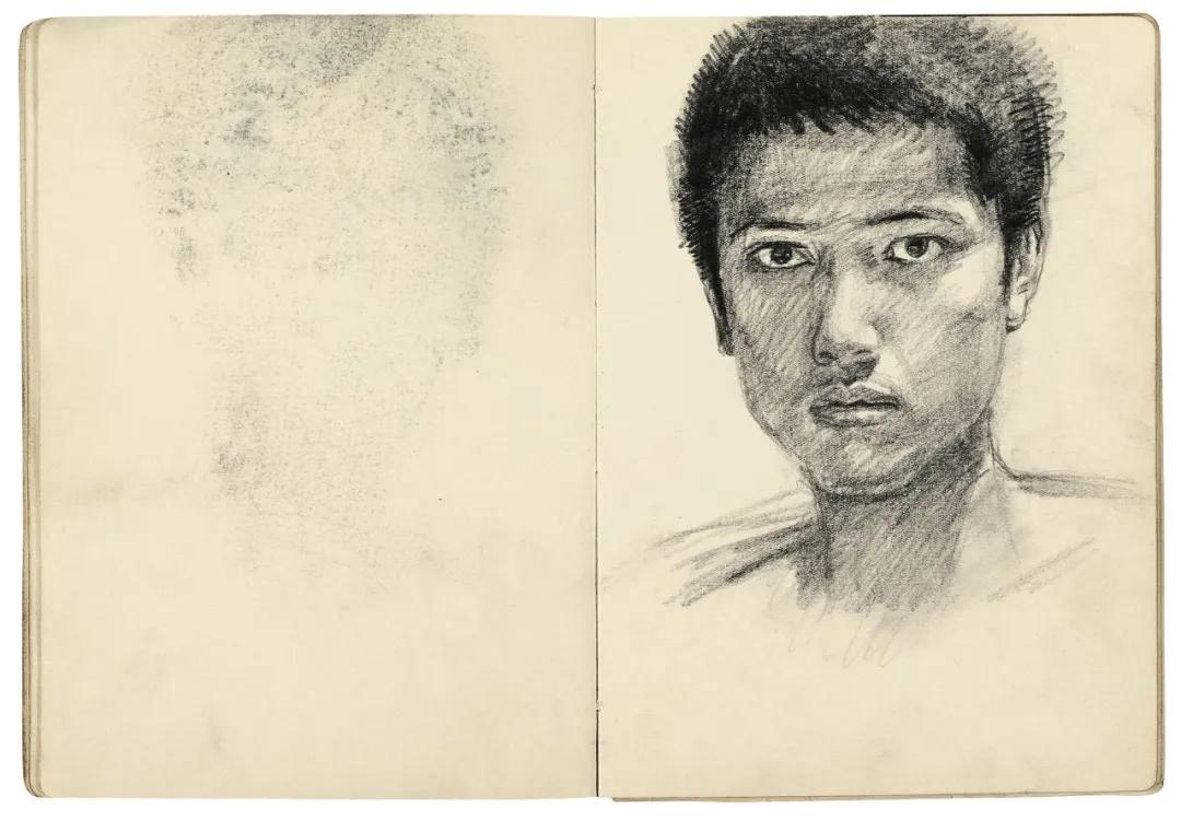 这幅素描自画像画于1978年,