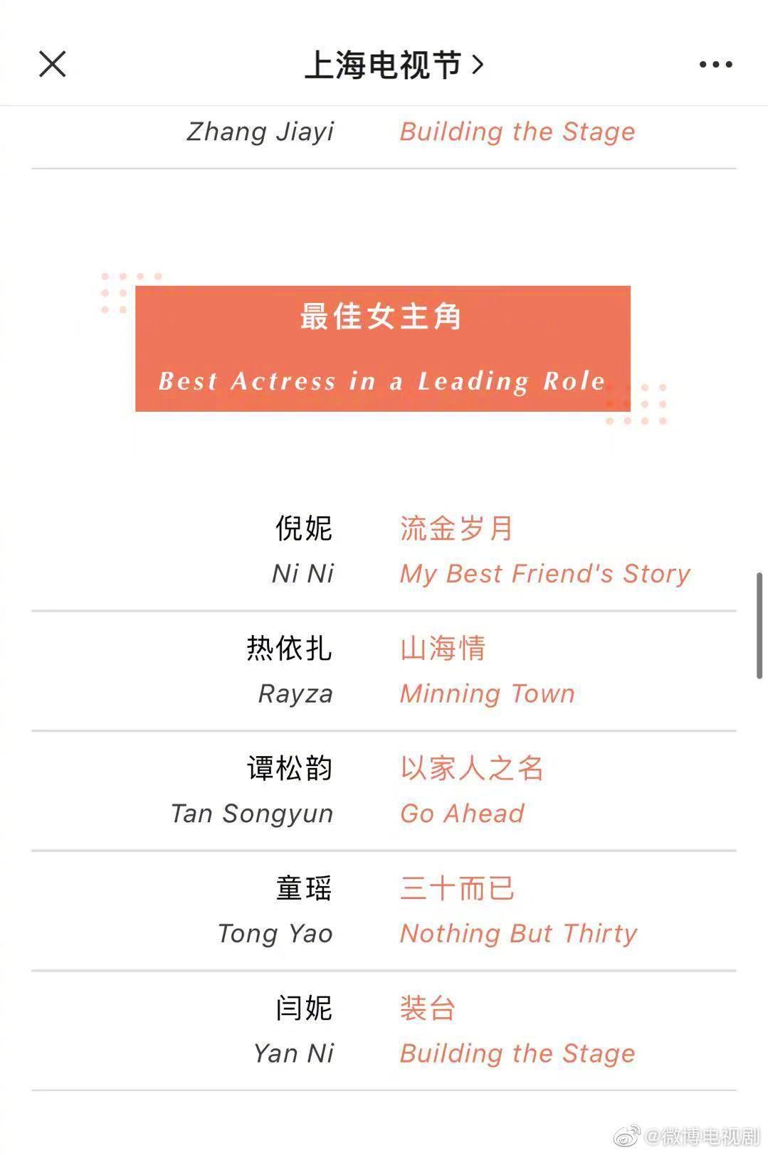 也就是说这届视后要在热依扎、童瑶、倪妮、谭松韵之间产生了?