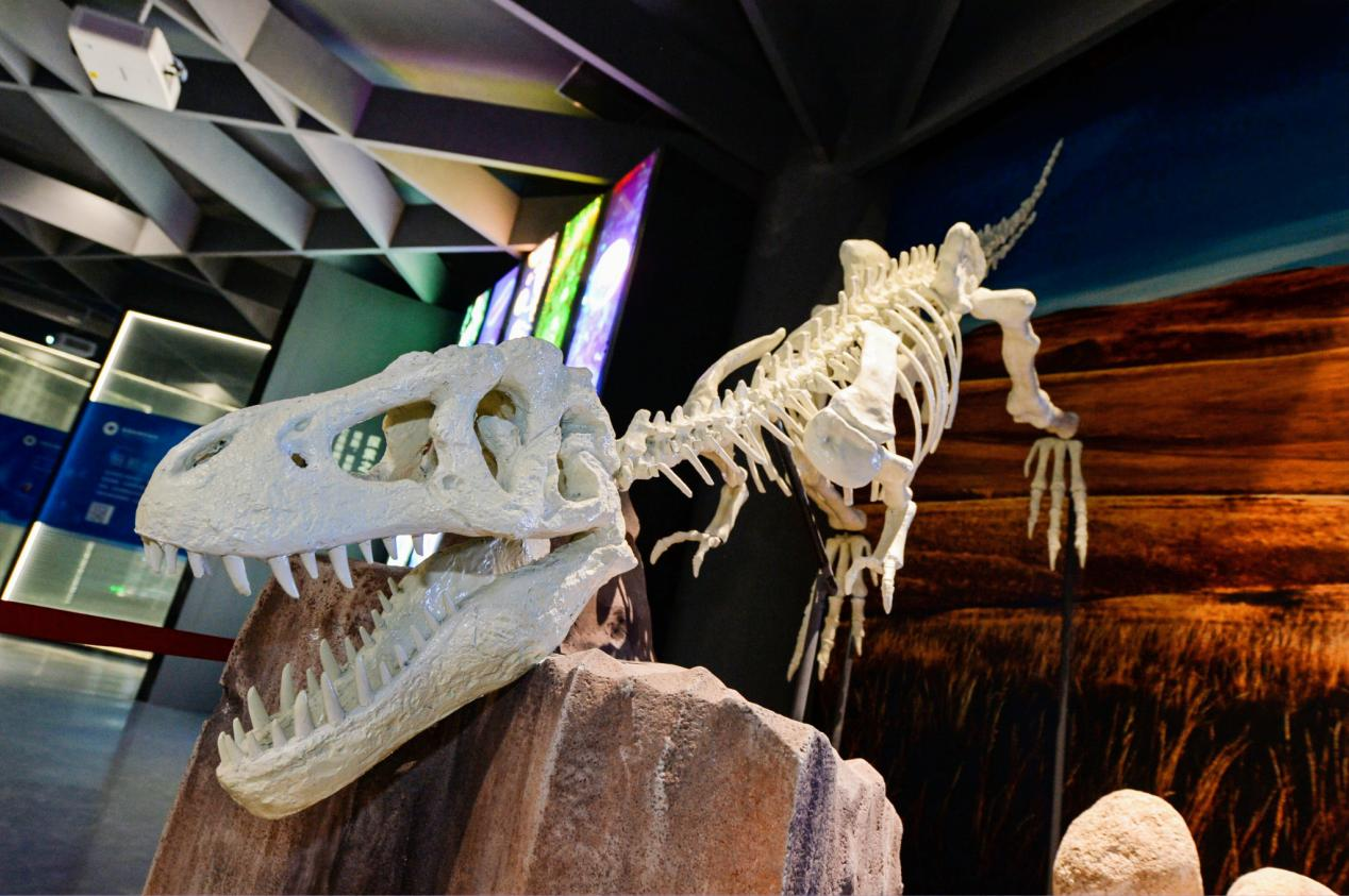 它曾是中生代的绝对霸主,它也是现代鸟类的始祖,它就是恐龙。在新昌未来科技馆,青少年学生与游客可以近距离地感受恐龙模型的身体与骨骼结构。奇特的是,它不是一般的静态模型,可以灵巧地扭动爪子与颈项,转动头部,伸出舌头。留心观察,观众还可以看到恐龙似乎在眨着“眼睛”,看到它的腹部也在蠕动。科技馆以恐龙模型结合多媒体技术在场景中还原了这位世纪霸主的奇伟英姿,让观众在亦真亦幻中感受生命的奥秘。