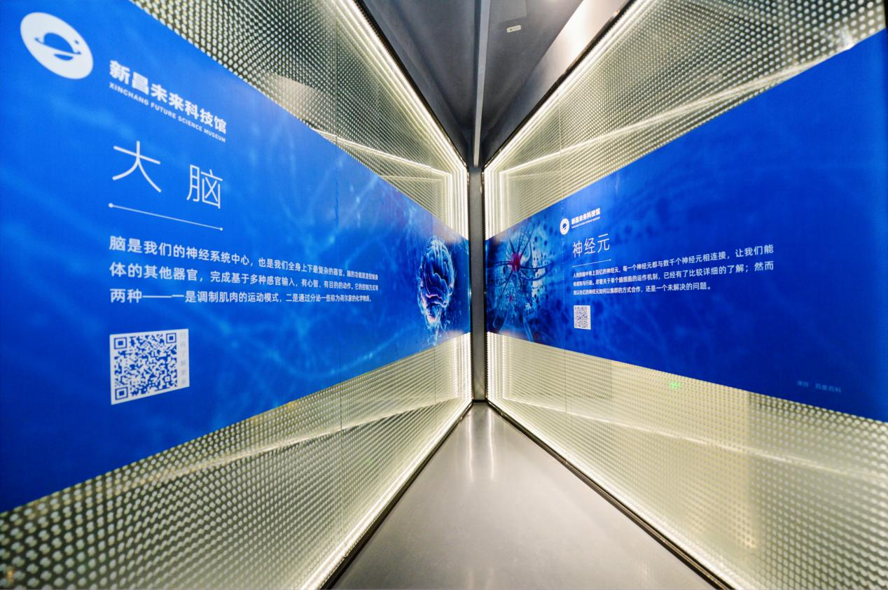 在新昌未来科技馆,未来生命展区还以大脑科普图文的形式,向参观者介绍了人脑的结构组成和功能组成,展示了人类的脑结构组织与脑科学,让参观者获得对于人脑的感性认知,引导人们热爱科学,探索未知世界。