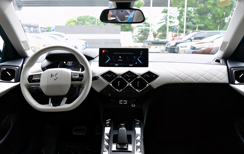 内饰方面同样保持了超高的设计水平,与其他品牌使用大量实木来提升豪华感的设计不同,DS更关注设计本身,更爱使用镀铬和皮质材料来营造高级感。整车采用奶白色的内饰,并融入了大量菱形的元素,空调出风口、皮革纹路、档把两侧的控制按键都使用了菱形,再辅以镀铬材料点缀,档次感的营造还是十分到位的。