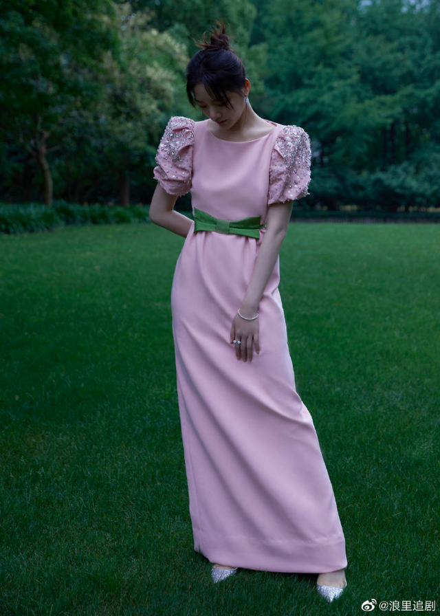 最后是任敏的红毯造型,泡泡袖碎钻粉色连衣裙,再搭配上绿色蝴蝶结腰带,整体看挺好的,但这裙子也太“扬短避长”了吧?