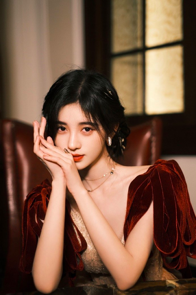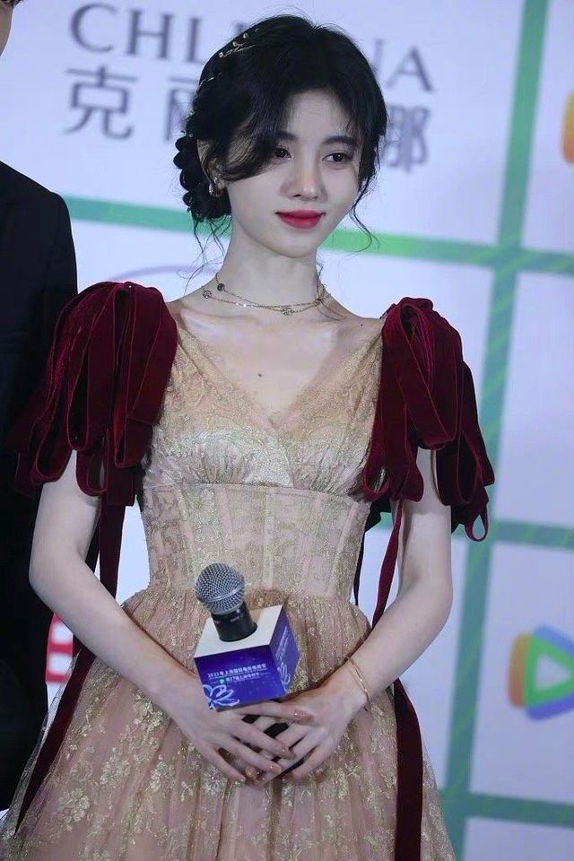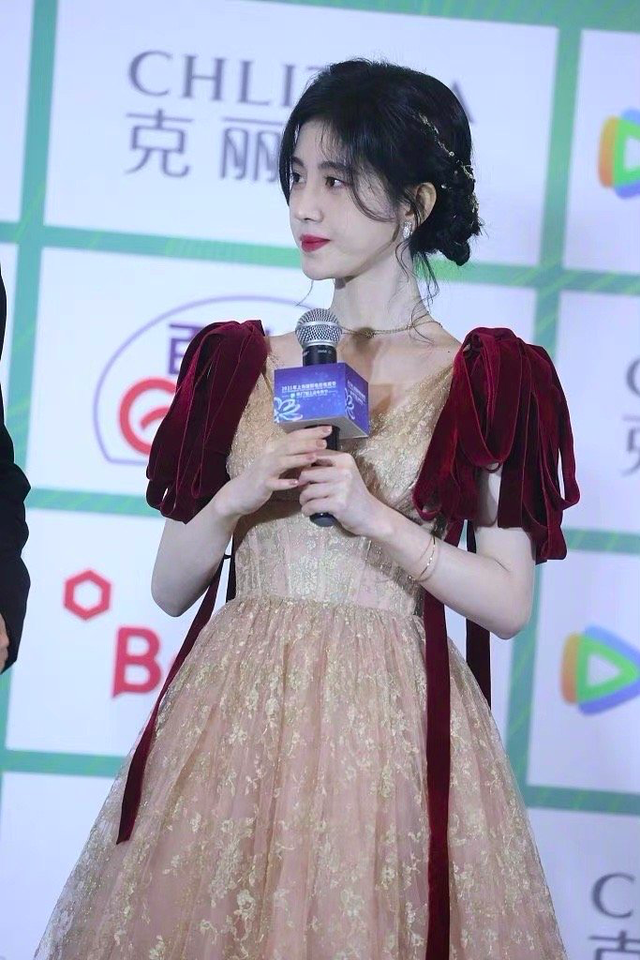鞠婧祎这次是带着新剧《慕南枝》去的,公主盘发搭配红丝绒织带长裙,好有港风的味道呀。