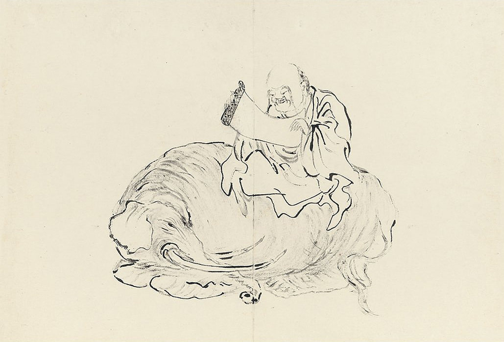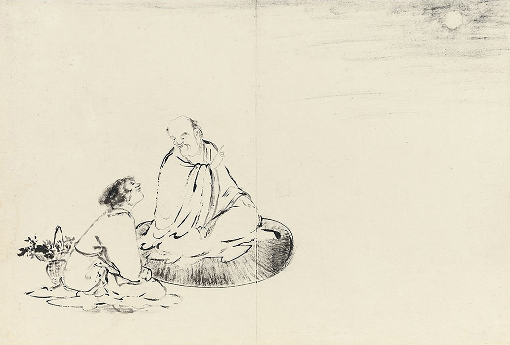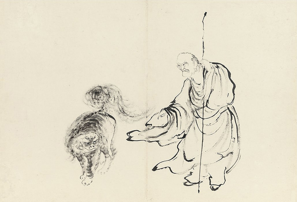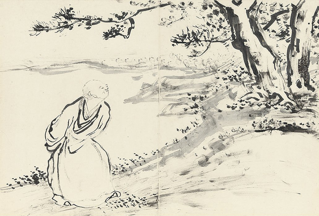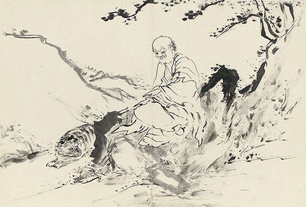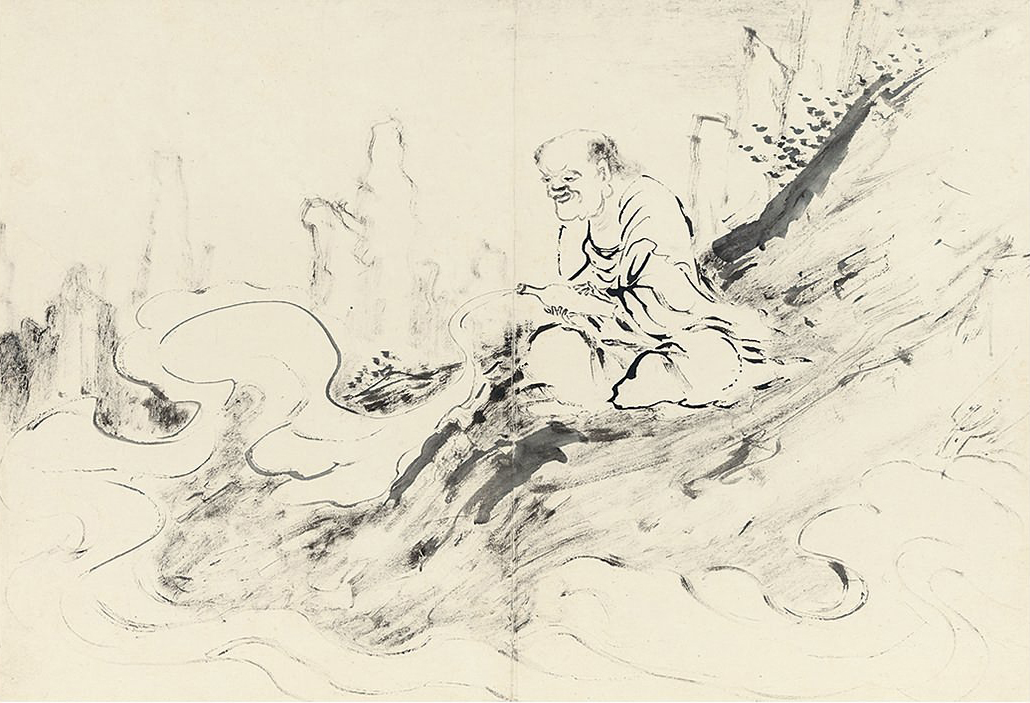 此册作十八罗汉像,种种变相,种种法门,天上人间,若真若幻。不仅造型生动,即树石布境,皆指随心运,气韵悉备。作指画,犹有书卷气,则尤为难能,是其生平极精之作。