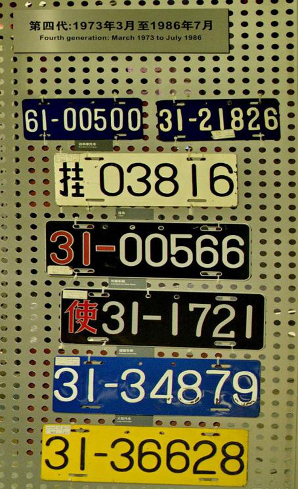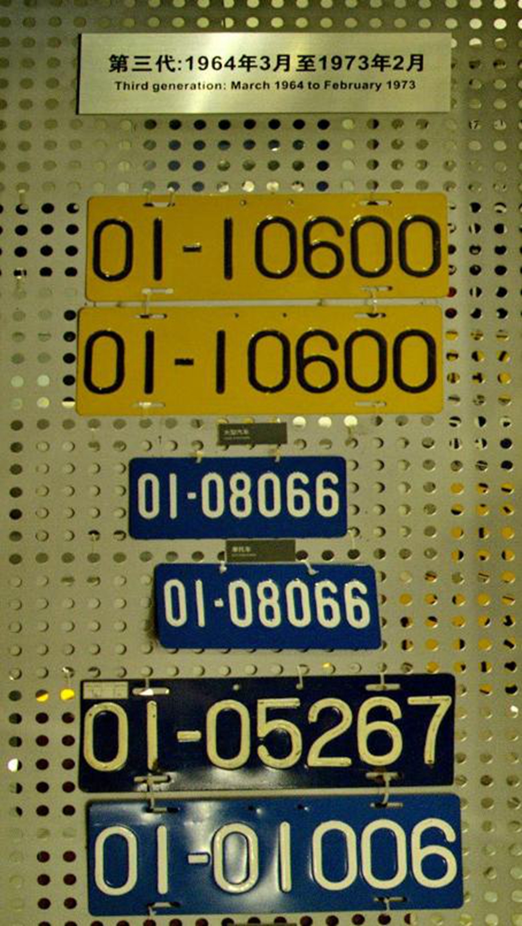 第三代车牌的发行时间是1964年3月到1973年2月。相较于第一代最大的变化就是取消了五角星,并采用了更加简单的2位省市区编号+后5位登记数字编号来区分辨识,不过说真的这代车牌没有任何设计感可言。