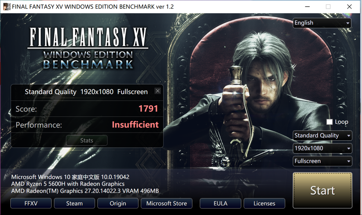 ▲FF15基准测试,FHD默认画质得分为1791。