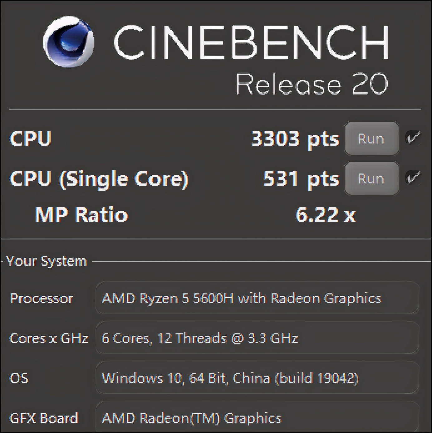 ■处理器:锐龙5 5600H(6/12,3.3GHz/4.2GHz)