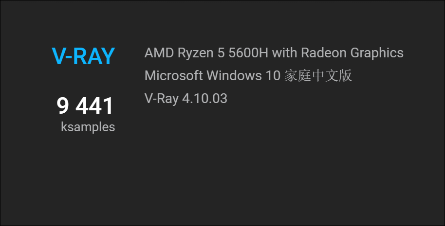 ▲V-RAY基准测试,该项目主要考察笔记本处理器的多核性能情况,分数越高代表性能释放越强。RedmiBook Pro 15锐龙版的处理器分数为9441,同样较大幅度领先25W的锐龙5 5500U,后者的分数为7027,领先幅度约34%。