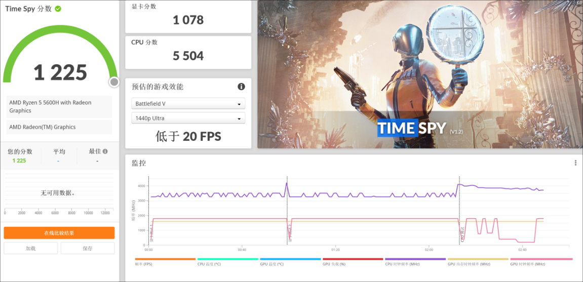 ▲3DMark Time Spy场景,显卡得分为1078,标准的7核款集显分数。