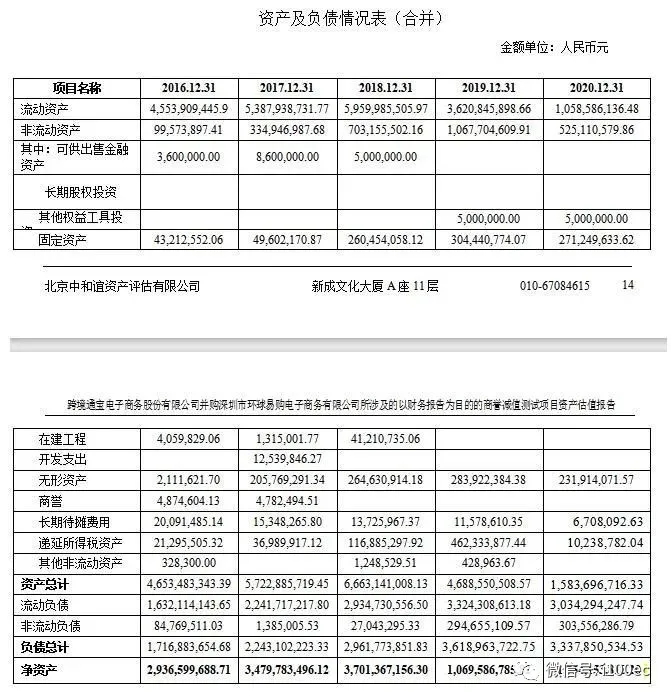 6月3日,跨境通公布了其并购环球易购,所涉及的以财务报告为目的的商誉减值测试项目资产估值报告。报告指出,深圳环球易购销售额(合并口径)从2012年1.98亿到2014年14.16亿,2016年达到71.63亿,2017年突破百亿,2018年达124.07亿,2019年收入85.06亿元,2020年收入下降到了56.29亿元。