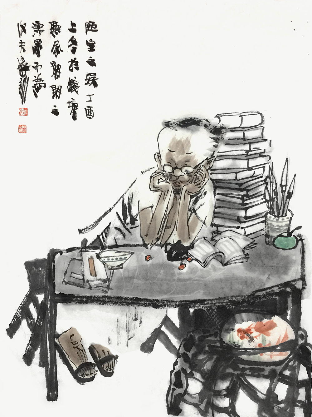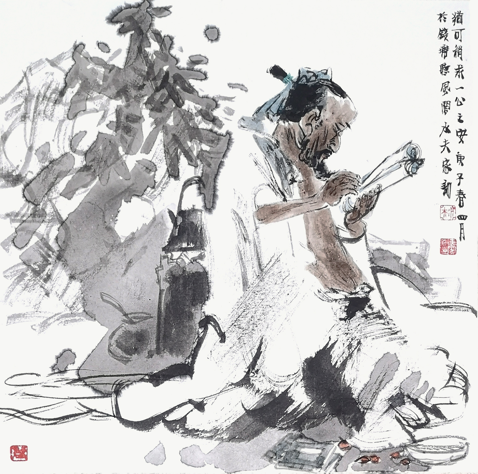 王家训在国画创作中,注重内在的观照和体验,将不同时空的人和物进行组合。他不是站在离开对象的位置去观察、表现对象,而是站在对象之中观察对象,身临其境地表现对象,按照人与自然的关系来构建心灵的框架。