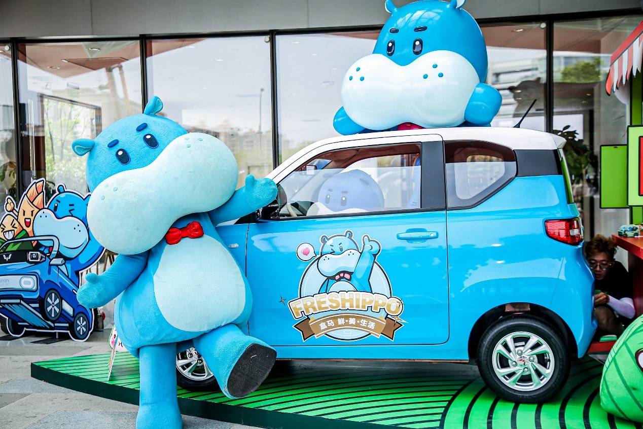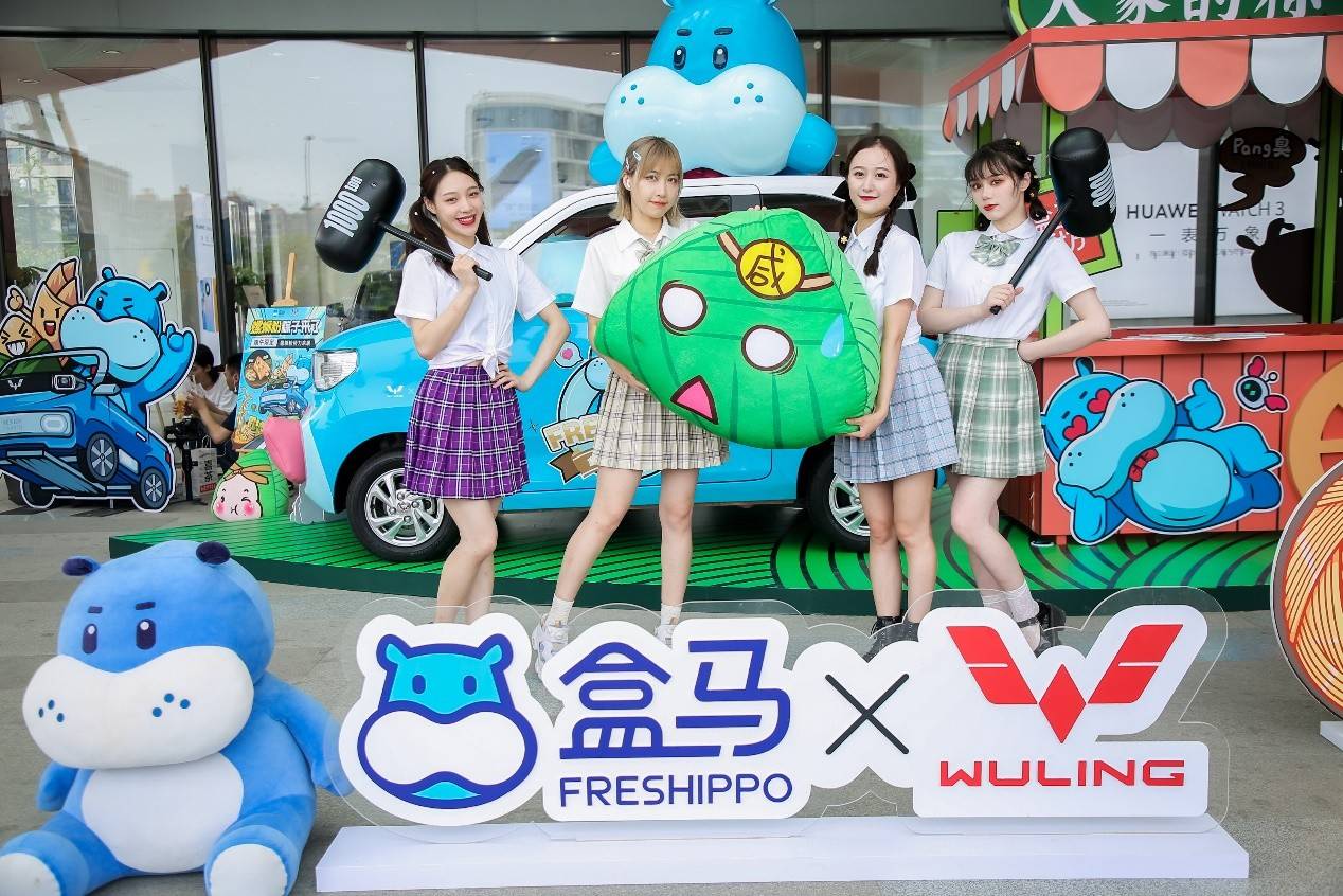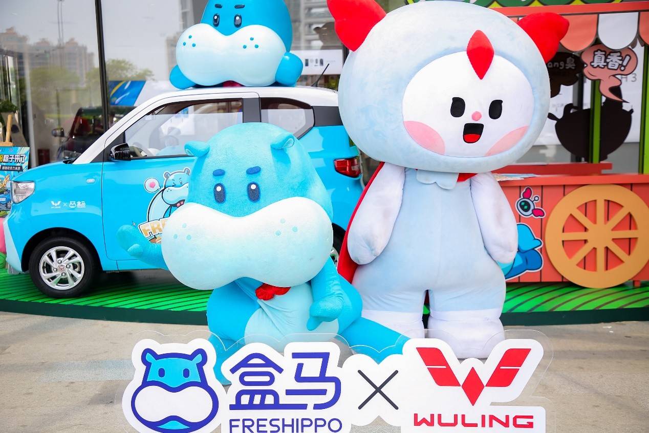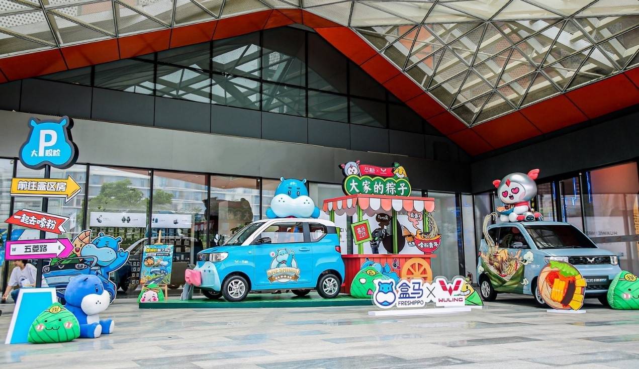 继五菱×盒马联名快闪店在上海首发开启,2021年6月11日,五菱再度携手新零售平台盒马在杭州打造线下快闪店,碰撞出跨界潮玩势能,与阿里动物园带来趣玩互动新体验。“人民的代步车”宏光MINIEV再度释放潮创风采,化身盒马配送车亮相街头,引领新零售配送新潮流。