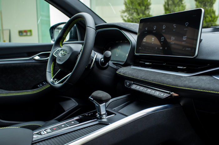 值得一提的是,吉利星瑞“时空版”采用了领克03+中高配才有的意大利进口Alcantara麂皮内饰材质,时尚豪华感扑面而来。同时,全新打造的悬浮能量座舱,使得极光绿能量光波缝线灵活穿梭于座椅、方向盘、门板等各个细节,再加上座椅头枕处的极光绿“CMA”专属标识和中控饰板上的星河镭雕3D设计,处处彰显了其CMA架构的独有科技基因,整个内饰科技感爆棚。