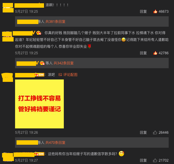 待拍的几部大剧,《六爻 》、《落花时节又逢君》、《朝歌行》,全都撤下了他。真是好家伙,演艺生涯刚开始就结束了。