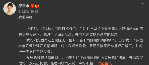 在未播剧《芥子时光》中他是男一号,这部剧要是不换头,肯定是播不了了。而后续没有那么简单,郝富申后援会发长文宣布脱粉。据爆料,之前定了由郝富申出演的角色,也全部被换。