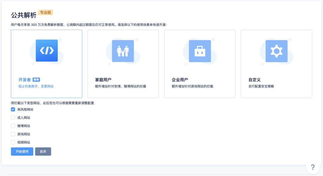 A:两者追求的目标都一样,即替用户过滤危险的网站 。但公共 DNS 专业版提供了更轻量化解决方案,你不用安装客户端,也不会消耗系统资源,如果你想查看拦截效果,访问控制台即可。