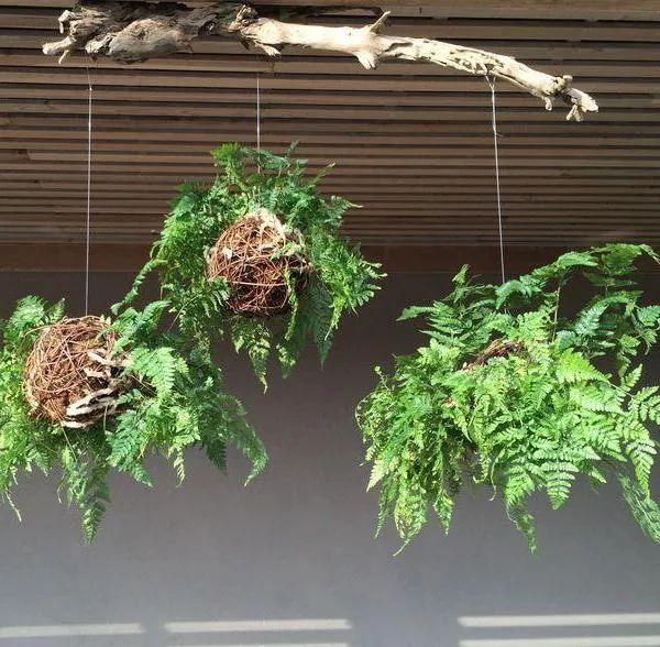 狼尾蕨养成苔藓球景观,并悬挂在空中养护