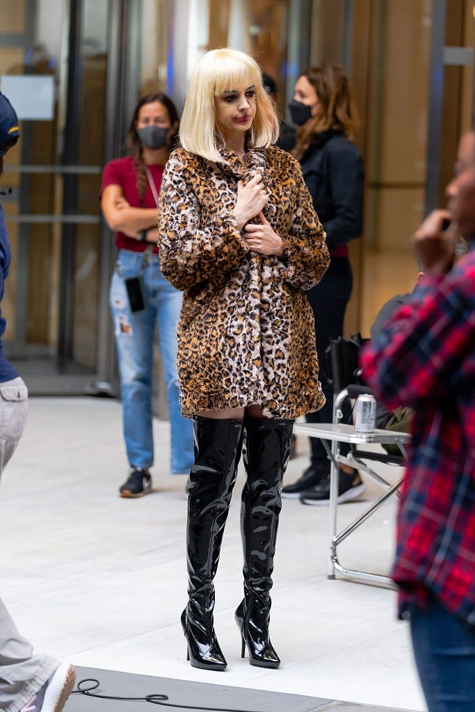 当地时间2021年6月11日,纽约,安妮·海瑟薇(Anne Hathaway)亮相街头拍摄《WeCrashed》。