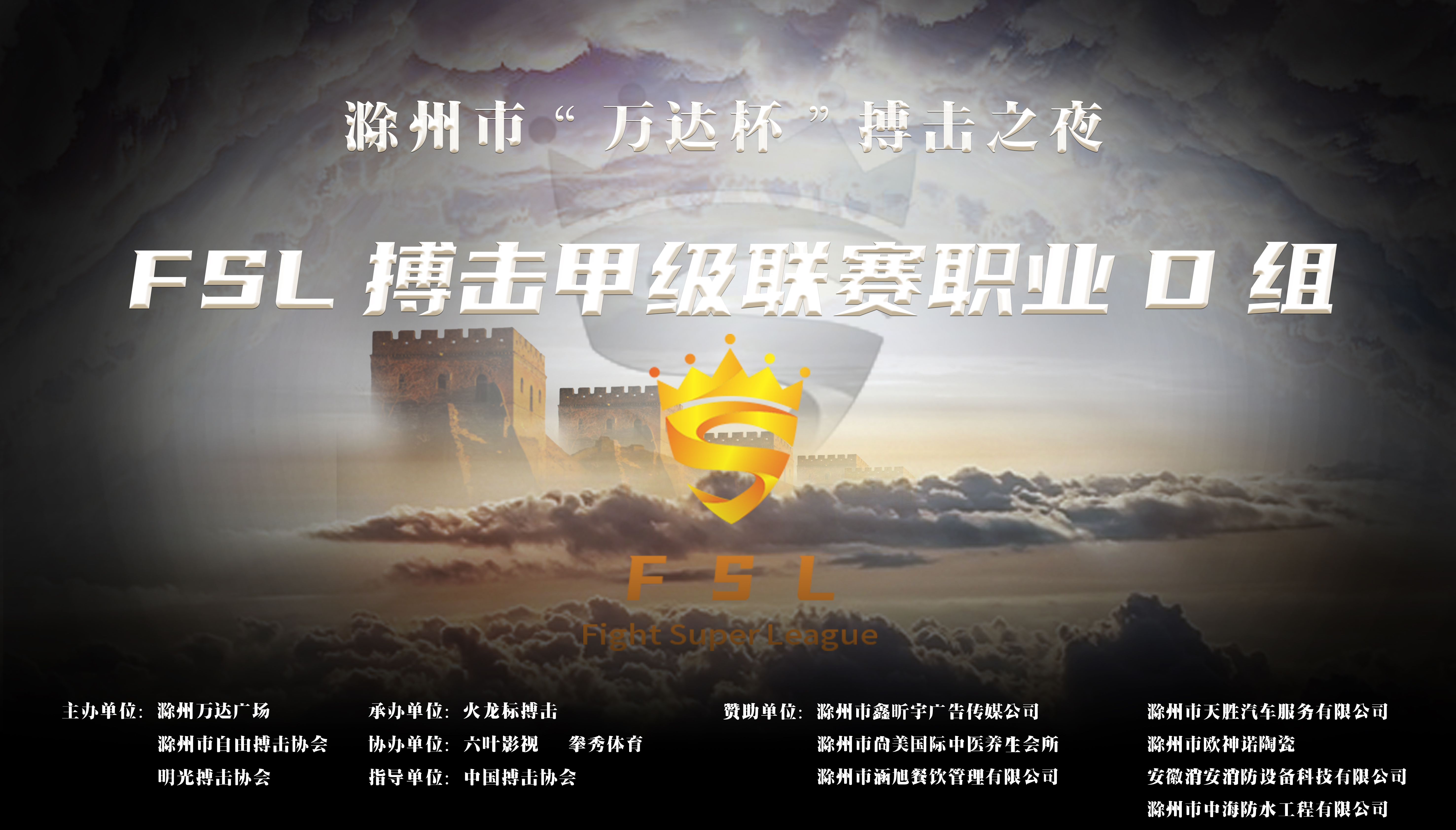 举业界之力,造全新生态,这是FSL搏击联赛的宗旨,万众一心共创辉煌,本次比赛也得到了各界的支持,感谢:城市之家连锁酒店(富春园店)、滁州市“涂三更”酒业、滁州市鑫昕宇广告传媒公司、滁州市尚美国际中医养生会所,滁州市涵旭餐饮管理有限公司、滁州市天胜汽车服务有限公司、滁州市欧神诺陶瓷、安徽消安消防设备科技有限公司、滁州市中海防水工程有限公司。