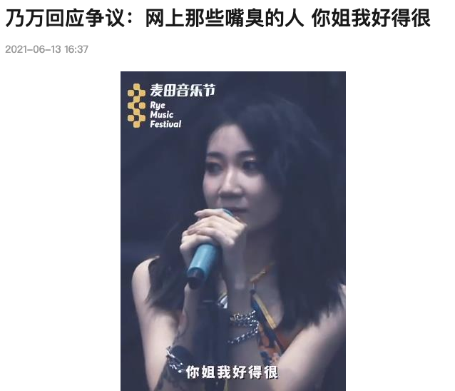 但没想到,现离当初那件事情已经过去一个多月了,乃万突然在麦田音乐节上重提此事,她表示「请大家不要隔着屏幕去判断一个人,更不要隔着屏幕去相信别人的判断」,更是直怼那些恶评者,「网上那些嘴臭的人,你姐我好得很,劳你们操心了」