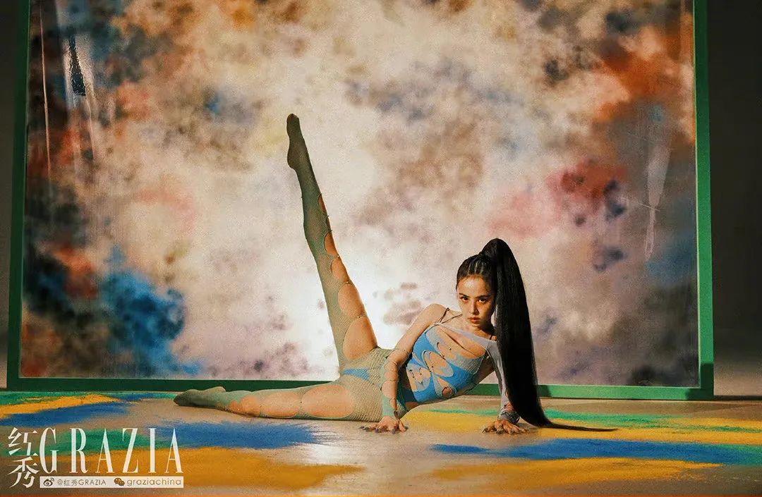 造型百变,气场十足的她,今年3月拍摄《尼龙》杂志封面,身穿红色连体衣,搭配金属圆环装饰和高跟鞋,酷飒撩人。