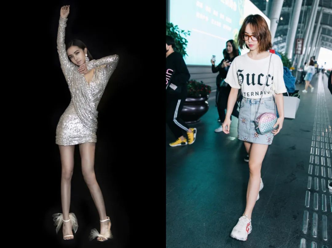 不只私服穿搭让人眼前一亮,对外造型也让令人惊艳。2017跨年演唱会Versace黑色吊带开叉裙上面镶满铆钉,一时间就把性感、魅惑和嚣张都写在了脸上。