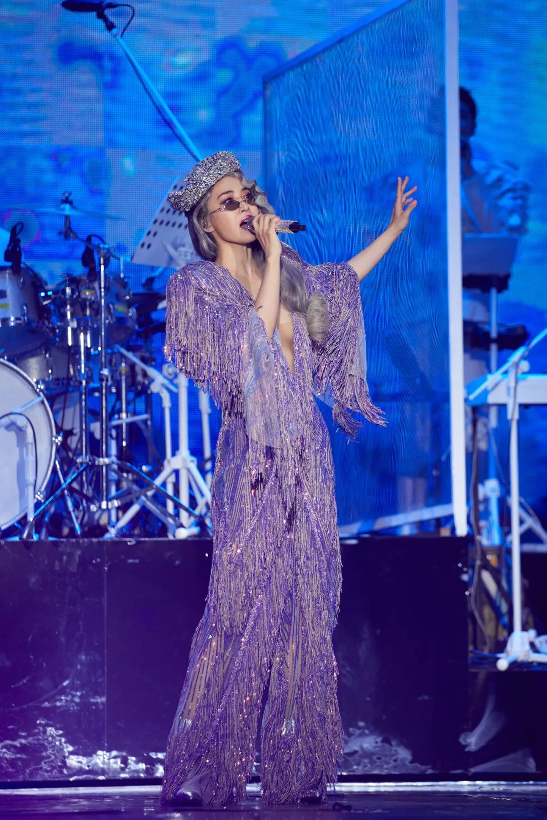 去年的Ugly Beauty演唱会更是场场爆满,40岁的她穿着SEYIT ARES紫色深V流苏连体裤,胸前深V性感迷人。