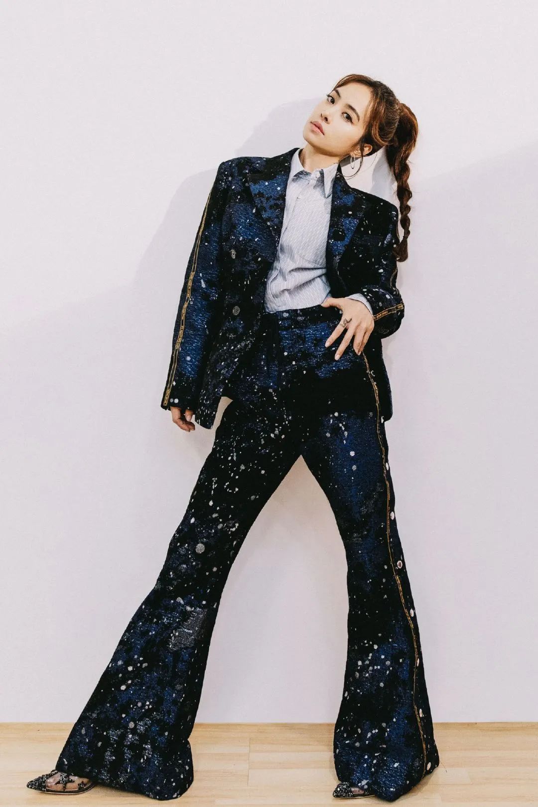 2020年金曲奖她更是穿了一身Gucci亮片连体裤登场,158的她穿出了180的拉风感。