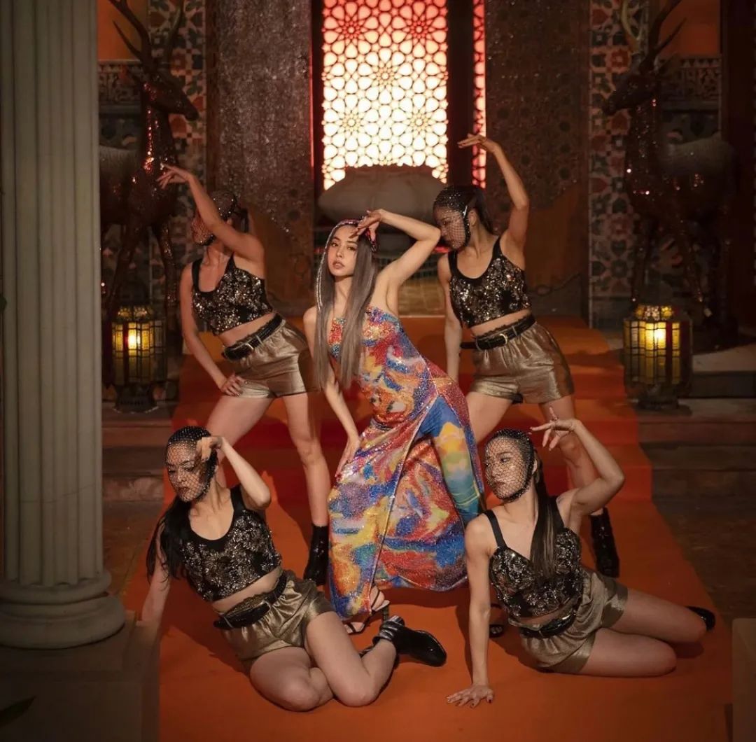 场景转换,映入眼帘的是摩洛哥风建筑,蔡依林身穿彩色亮片高叉裙亮眼炫目,跳起舞来生动又具有东方美感,这条裙子来自国内设计师品牌Angel Chen 2021春夏系列,整体设计有型,灵动柔和。
