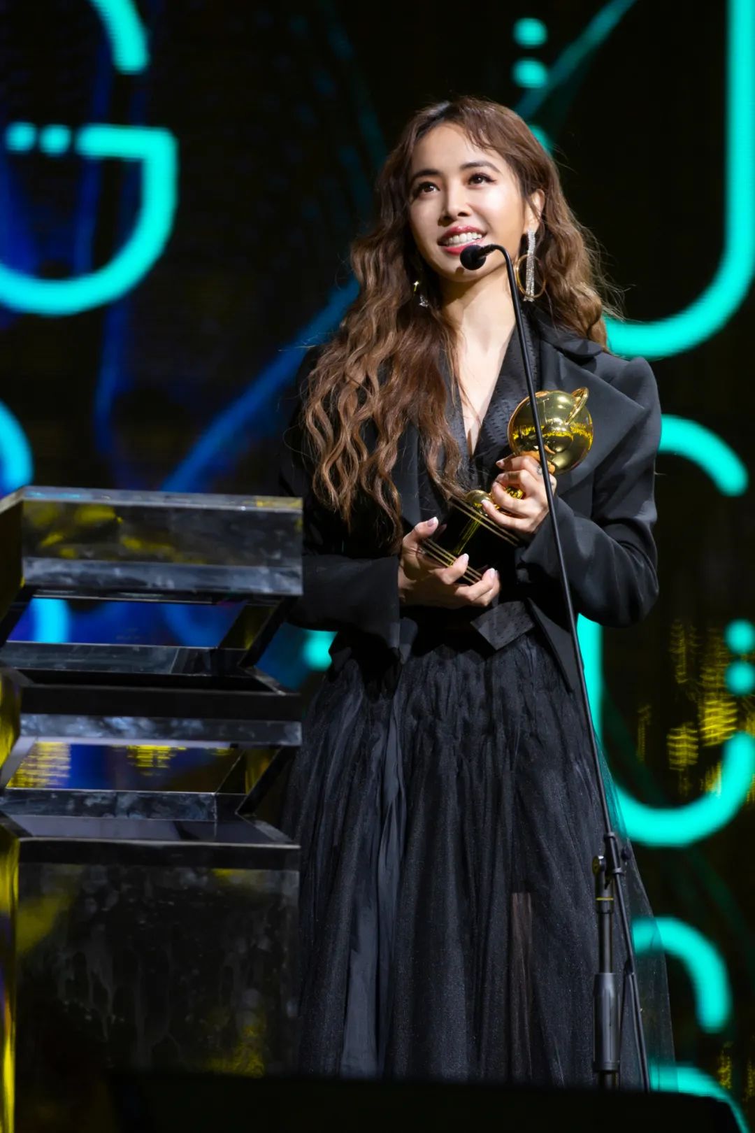 Berluti绿色酷飒西服套装,配色大胆,个性十足,充分展现出蔡依林的女团身材。为了配合西服造型她还搭配了绿色长卷发,作为舞台look出场特别燃炸,气场全开的唱跳女王范瞬间出圈。