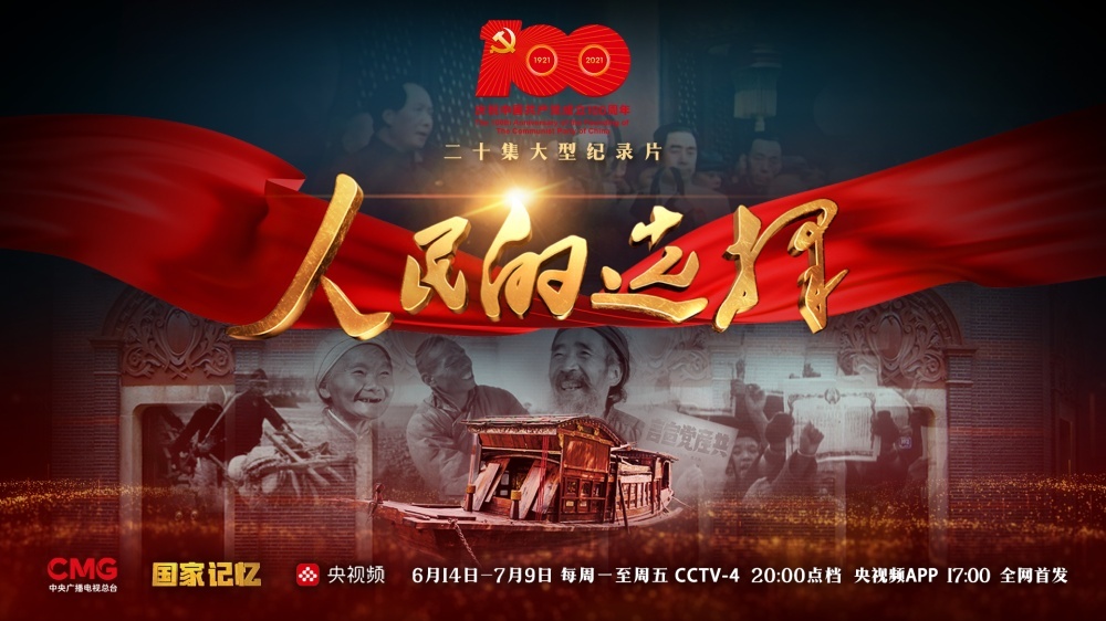 为庆祝中国共产党成立100周年,由中央广播电视总台华语环球节目中心《国家记忆》栏目摄制的20集大型纪录片《人民的选择》,将于6月14日起,在CCTV-4晚8点档黄金时段连续播出。