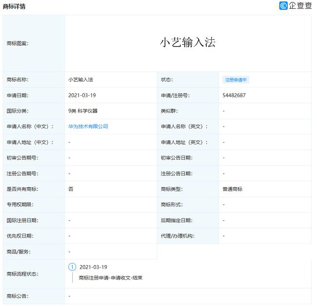 IT之家 6 月 14 日消息 今年 3 月份,华为申请注册了“小艺输入法”商标,暗示该输入法即将发布。