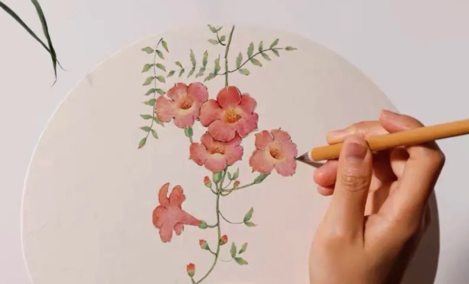在欢乐田园,只见游客们轻摇团扇,微风徐徐,好不惬意。农业科技馆内,成都市民张先生带着女儿拿起毛笔,笔尖轻触,在绢丝扇面上一层层的渲染,或天马行空,或真实写意,一把带着诗意情怀的团扇即刻展现。六岁的女儿惊呼:“哇,太棒啦!”