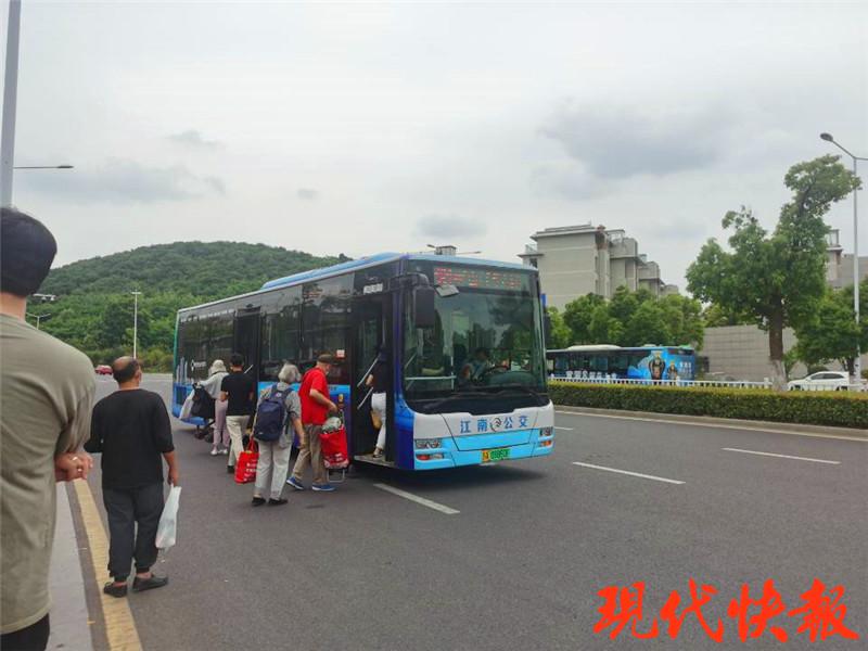 现代快报记者注意到,虽然是平峰期,这处公交站台依然人来人往。在记者探访的近 1 小时里,跨市运营的 D5 路公交车平均十几分钟发班一次,每次都有十几到二十多名乘客,乘坐起来非常便捷。