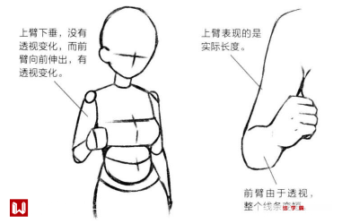 人物手臂的透视怎么画?多角度手臂的透视: