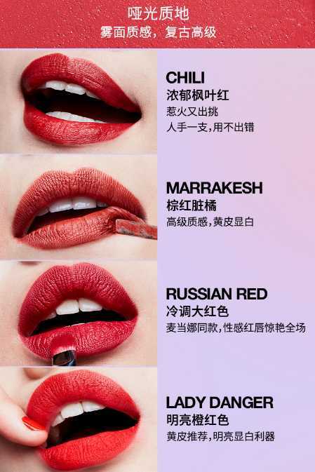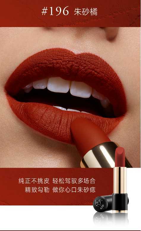 秋冬新款哑光唇膏,目前最火的口红之一 气场全开的橘红里带着些小性感哑光质地更添了一种复古高级感薄涂 清新可爱橘厚涂 端庄复古红。不小心打翻的一杯胡萝卜汁,薄涂是奶橘奶橘的少女,厚涂是绝美朱砂橘,炒鸡好看高级感。